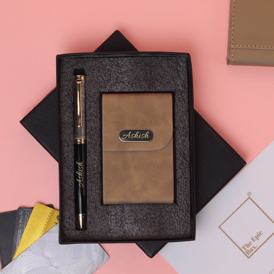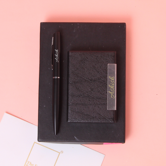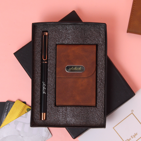 Personalised Elegant Pen And Cardholder Set