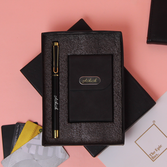 Personalised Sleek Pen And Cardholder Set