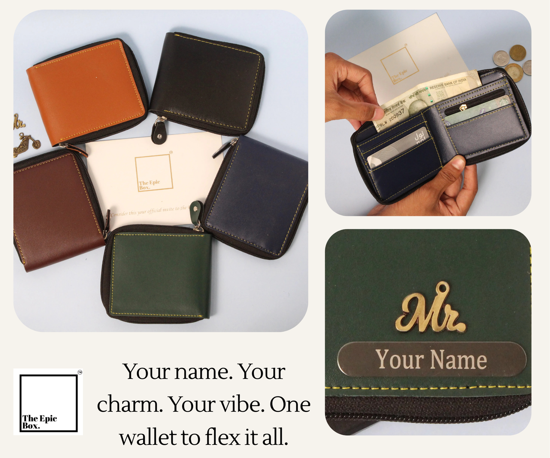 Designed for the modern man, this wallet blends secure functionality with a deeply personal touch. From the smooth zip closure to the custom name tag and charm, every detail is crafted to reflect both style and sentiment. A meaningful gift or a stylish upgrade – built to carry more than just the essentials.