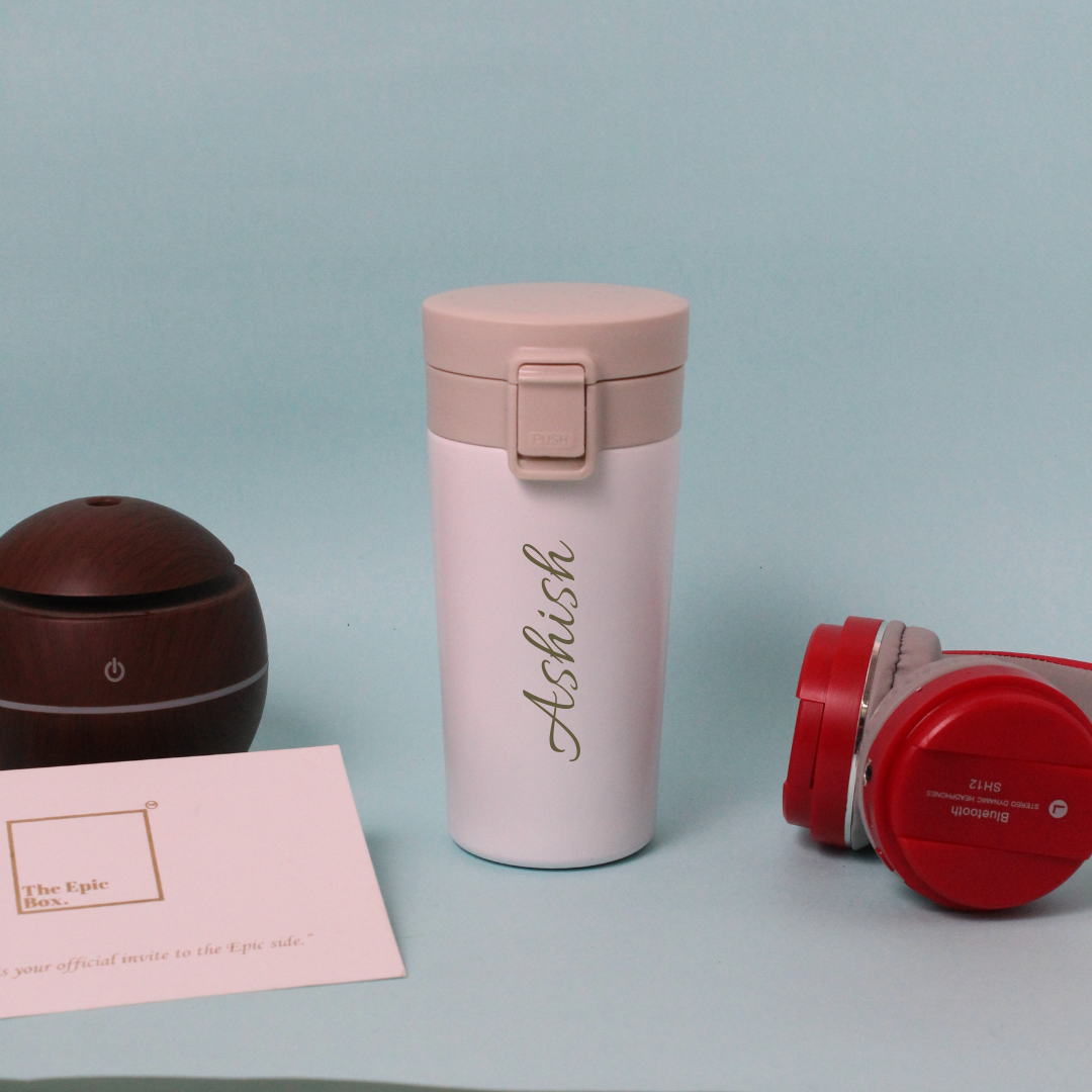 This personalized travel mug is your sleek, spill-proof companion—crafted for those who want every sip to feel personal and every detail to be intentional.